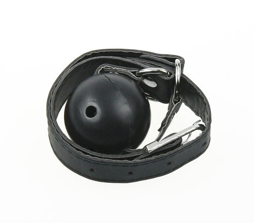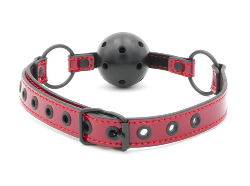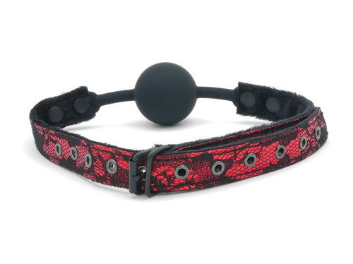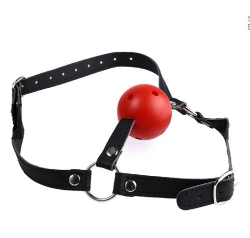 La ball gag è un bavaglio BDSM composto da una pallina, forata o piena, fissata a una cinghia regolabile che si posiziona attorno alla testa. Una volta inserita in bocca, limita parzialmente o totalmente la capacità di parlare, costringendo chi la indossa a comunicare con il corpo, gli sguardi e i gemiti.
