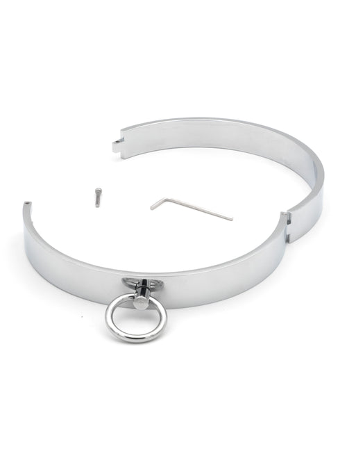 - Collari in acciaio, rigidi, importanti, indicati per coppie esperte che vivono il gesto del collare come atto solenne. Alcuni modelli includono chiusura con lucchetto, aumentando la percezione di affidamento totale al partner dominante.