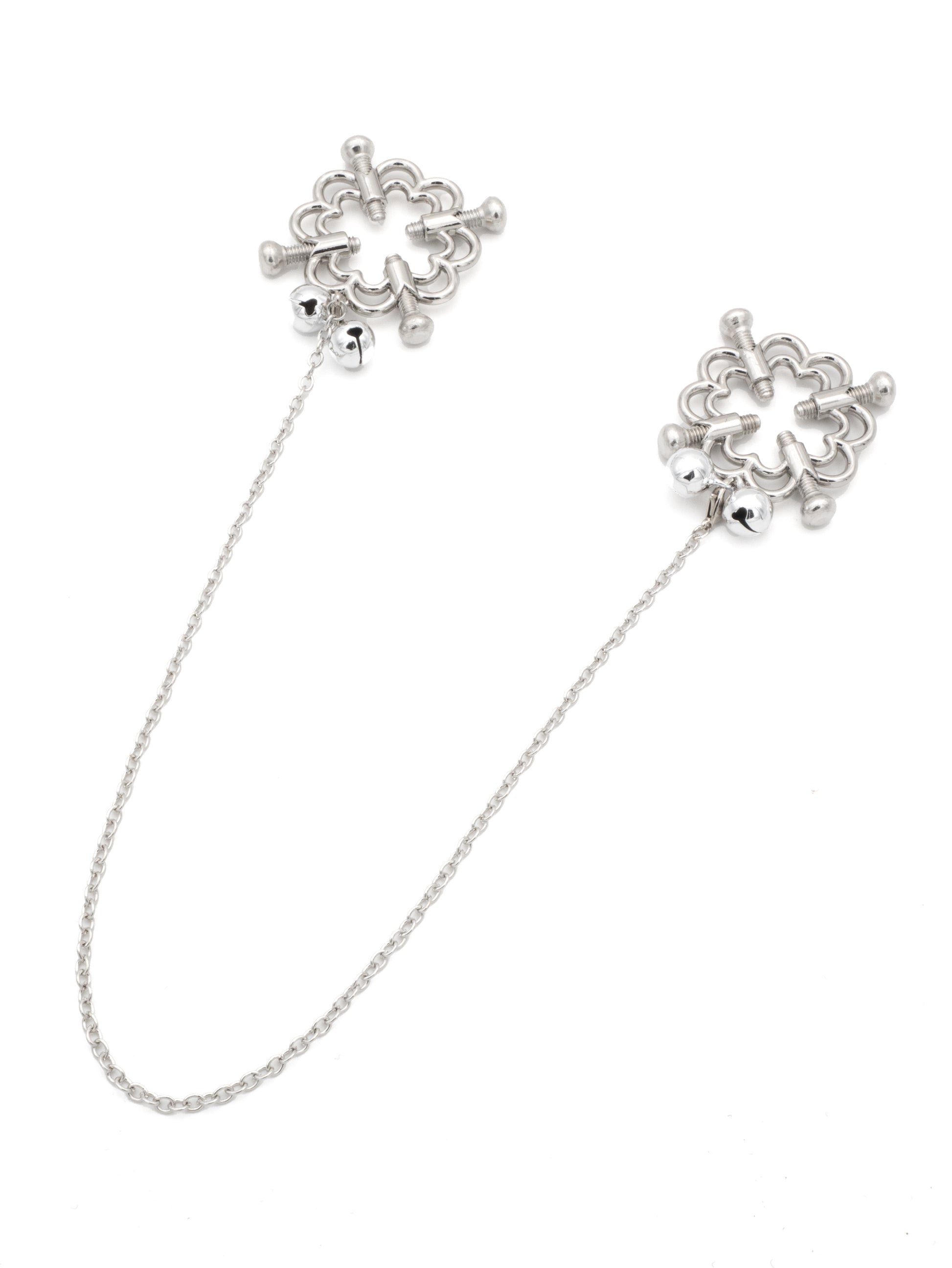 Le Pinze per Capezzoli con Quattro Regolatori sono progettate per gli appassionati di BDSM che cercano una stimolazione intensa e personalizzabile. Queste pinze uniche presentano quattro regolatori che circondano il capezzolo, permettendo un controllo preciso dell'intensità della pressione da ogni angolazione. La possibilità di regolare individualmente ciascun regolatore rende questo strumento estremamente versatile, capace di adattarsi a diverse dimensioni e livelli di sensibilità, offrendo una gamma di sensazioni da leggere a molto intense. Scegli tra il modello con catenina e senza.