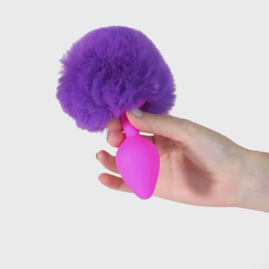 Purple Puff - Pompon Viola con plug anale in silicone rosa