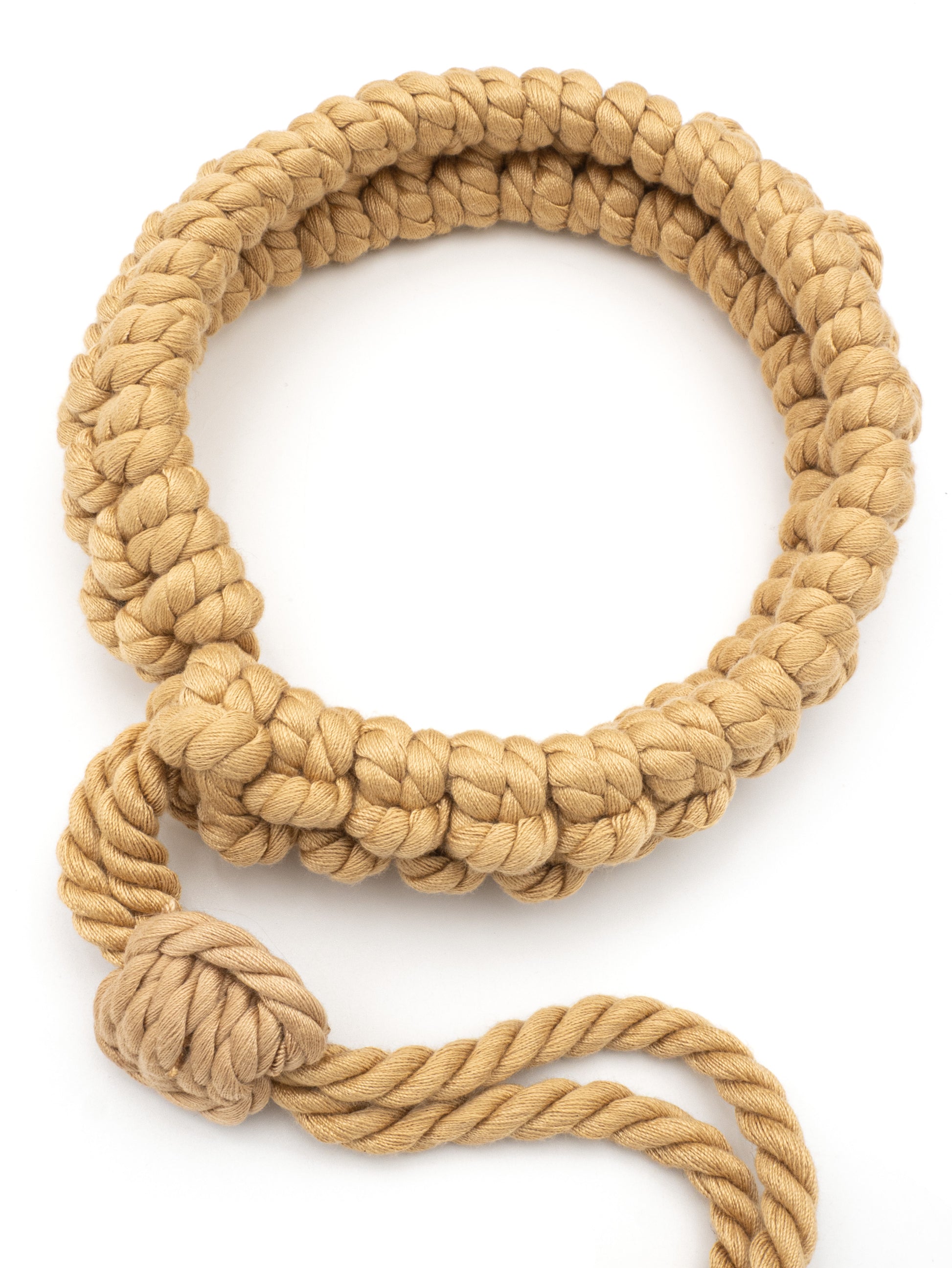 - Preparazione: Regolate il collare in corda di raso per adattarlo comodamente al collo del partner.